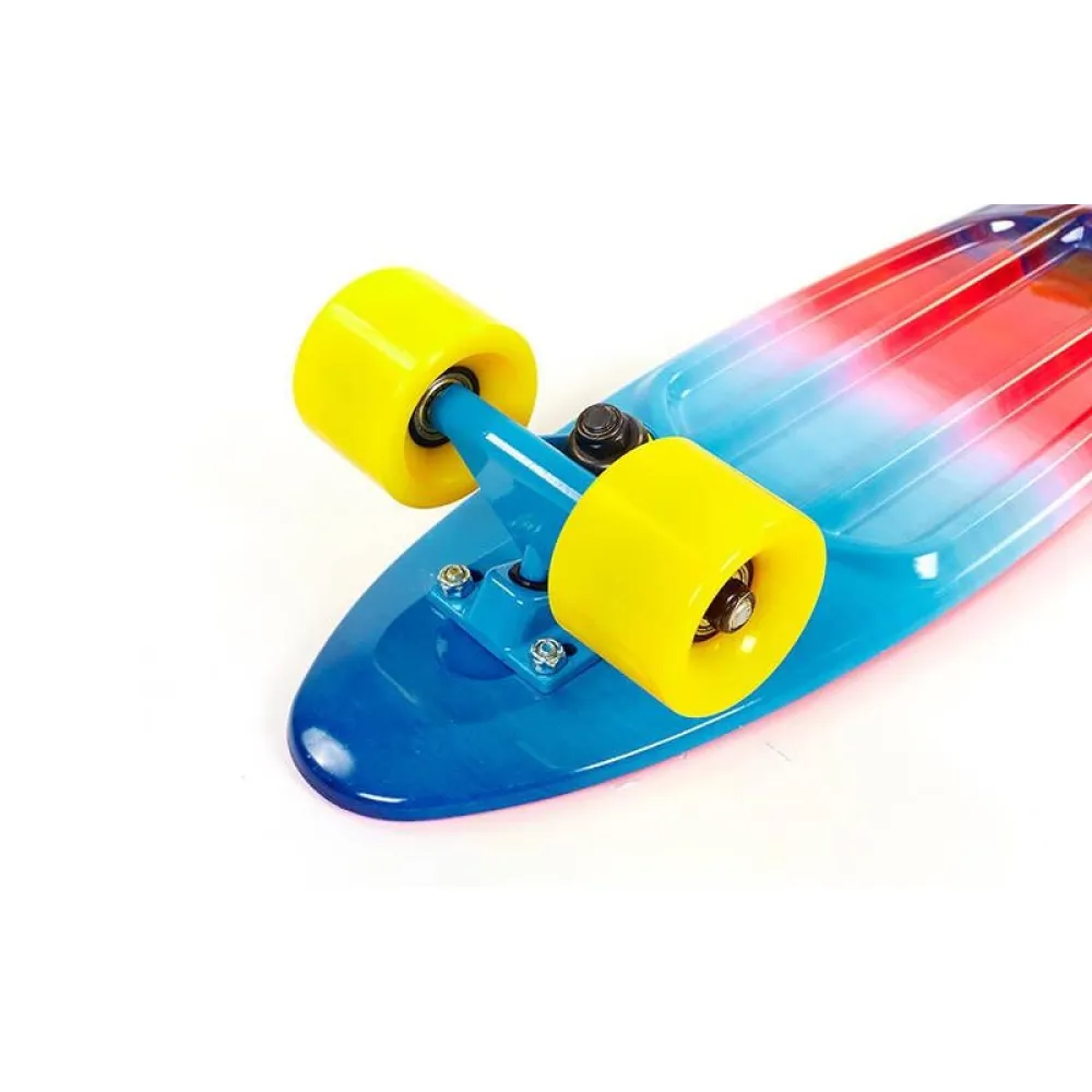 Стильный пенни борд Fish Skateboards Print 22.5" с ярким принтом выполненный из материалов высокого качества придется по душе как ребенку, так и взрослому человеку. Любители скорости оценят не только его необычное дизайнерское решение, но и маневренность, которое обеспечивает быстрое передвижение по городу. Небольшие размеры пенни борда позволяют его удобно перевозить в транспорте, ширина 15 сантиметров, а длина 57 сантиметров. Доска выдерживает вес взрослого человека до восьмидесяти пяти килограмм, что позволяет расширить возрастной диапазон пользователей. Анти-скользящая поверхность в виде ромбов с дополнительными ребрами жесткости не даёт возможность ноге скользить. Металлическая подвеска оснащена фирменными амортизаторами средней жесткости. Мягкие полиуретановые колеса с жесткостью 82 А не гремят во время езды и поглощают все вибрации от дорожных изъянов.
