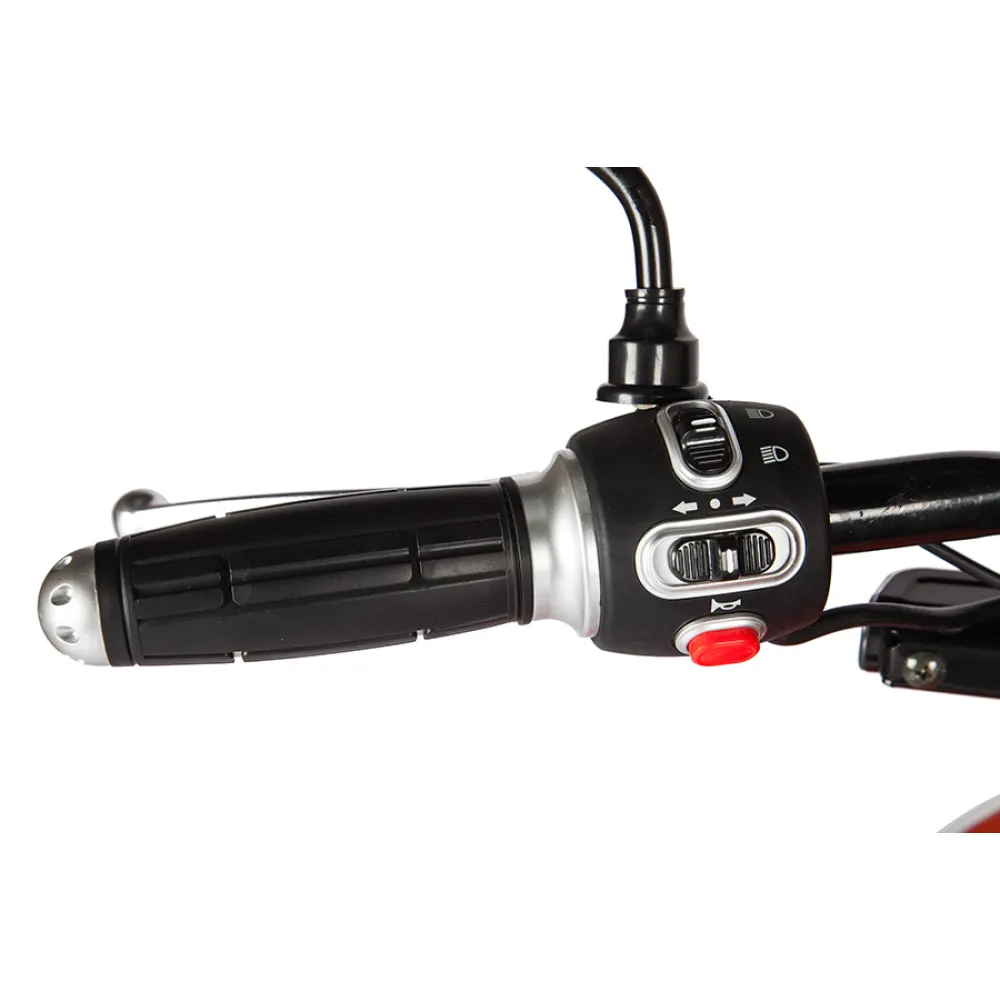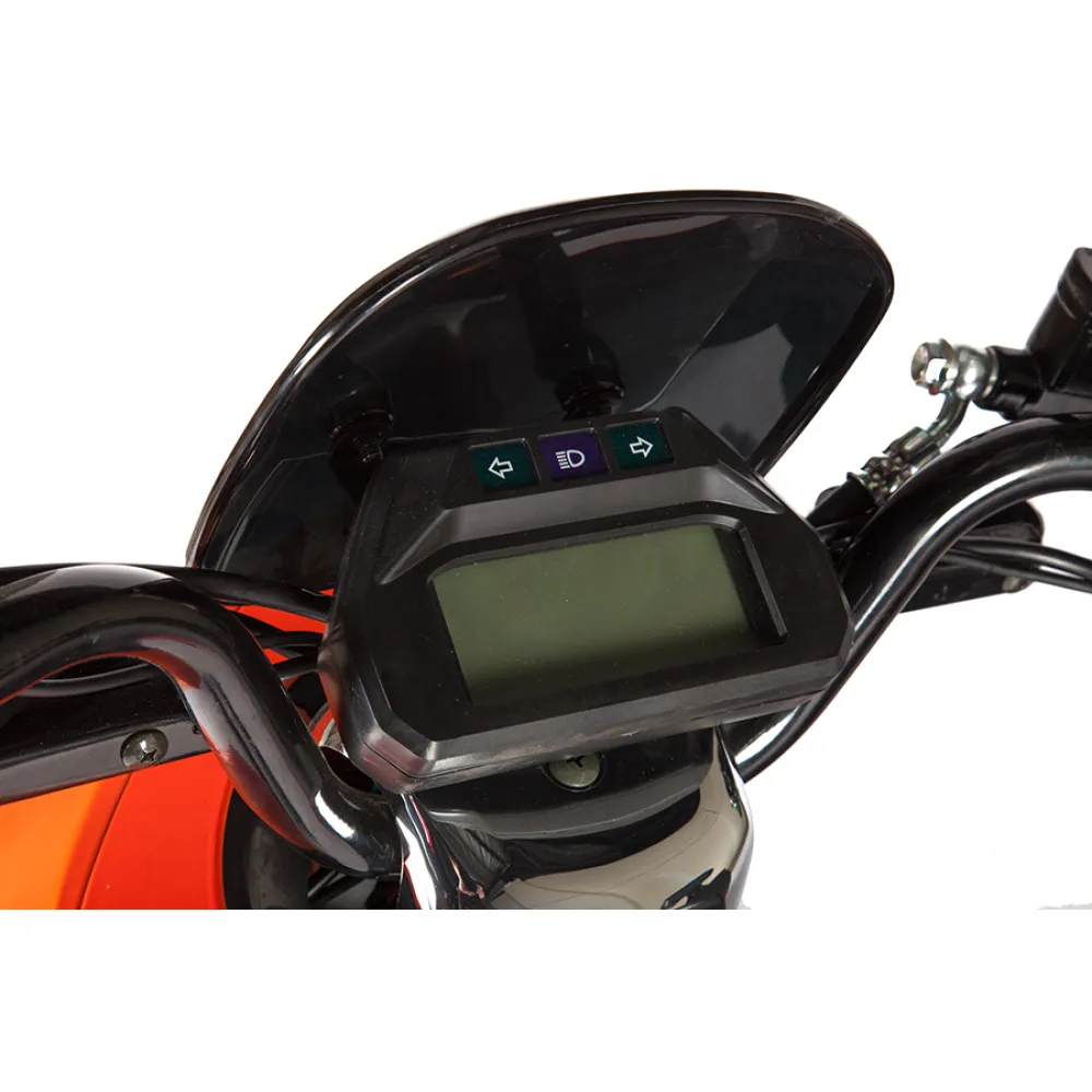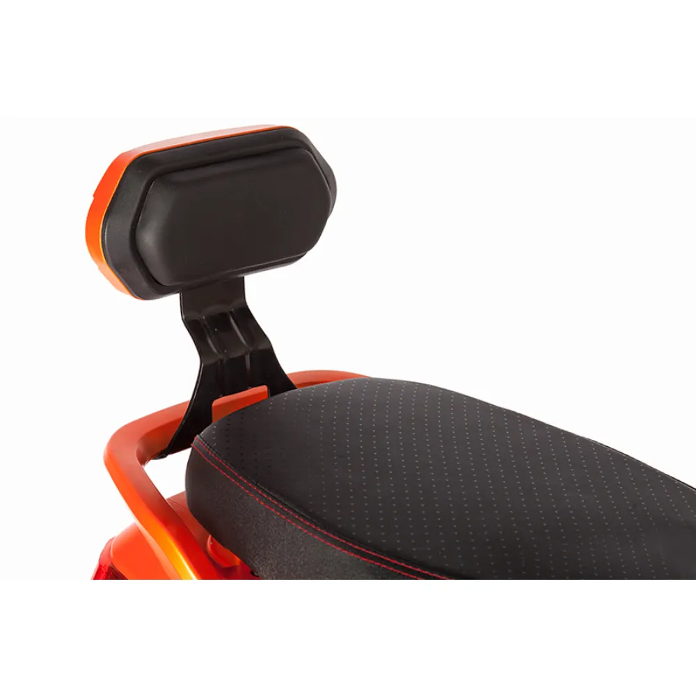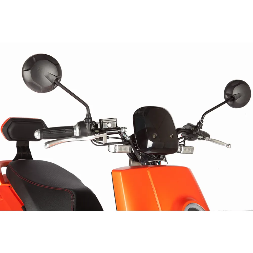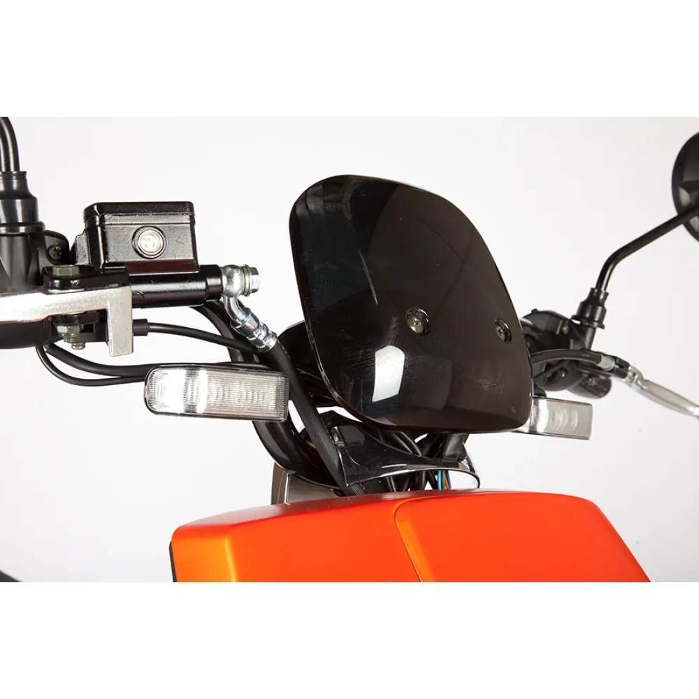 Электроскутер Zing Quick - самый экологический и удобный скутер, на котором очень удобно передвигаться по узким улочкам. При своей массе 77кг он легко разгоняется до скорости 45км/ч. Может использоваться как для поездок по городу, так и за городом. Мощность двигателя составляет 800Вт, чего вполне хватает для уверенного передвижения  на дорогах. Способен проехать на одном заряде до 45км, чему способствует съемная батарея повышенной емкости 20 Ah. Благодаря тому, что аккумулятор возможно заряжать от обычной электросети с напряжением 220В, использовать скутер можно везде, где есть электричество. Просторное сиденье на Zing Quick позволяет сидеть на нем вдвоем, сзади имеется спинка для поддержания пассажира. Устойчивая подножка у скутера уберегает его от заваливания на парковке. Диаметр колес 10 дюймов помогает уверенно преодолевать неровности на дорогах. Zing Quick имеет 3 скоростных режима, на нем установлены зеркала заднего вида, светодиодное освещение, габариты. Для управления данной моделью будет достаточно водительских прав с категорией М. Симпатичный оранжевый электроскутер отлично проявит себя в делах и путешествиях.