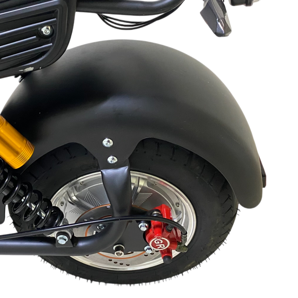Электроскутер Citycoco GT E30 в черном матовом цвете — это универсальное средство передвижения. С мощностью 3000W и задним приводом, он обеспечивает отличную динамику и маневренность на городских улицах. Благодаря двухколесной конструкции и надувным колесам диаметром 18 дюймов, скутер уверенно держится на дороге, что делает его идеальным для поездок по различным покрытиям.Съемный аккумулятор с напряжением 60V позволяет преодолевать расстояние до 50 км на одном заряде, что делает его идеальным вариантом для ежедневных поездок. Время зарядки составляет всего 5 часов, что обеспечивает быструю готовность к новым приключениям. Кроме того, в конструкции предусмотрено дополнительное место под аккумулятор, что увеличивает возможности автономной работы.Скутер весит 75 кг и может выдерживать максимальную нагрузку до 200 кг, что делает его подходящим для различных пользователей. Дисковые гидравлические тормоза обеспечивают надежную остановку, а большое мягкое сиденье и амортизаторы гарантируют комфорт даже при длительных поездках.Дополнительно, Citycoco GT E30 оснащен бортовым компьютером, зеркалами, звуковым сигналом, фарой и поворотниками, что повышает безопасность и удобство. Большая дека под ноги и прочная конструкция делают поездки еще более приятными.Электроскутер Citycoco GT E30 — это идеальное сочетание стиля, мощности и комфорта для тех, кто ценит удобство и скорость в городской среде.