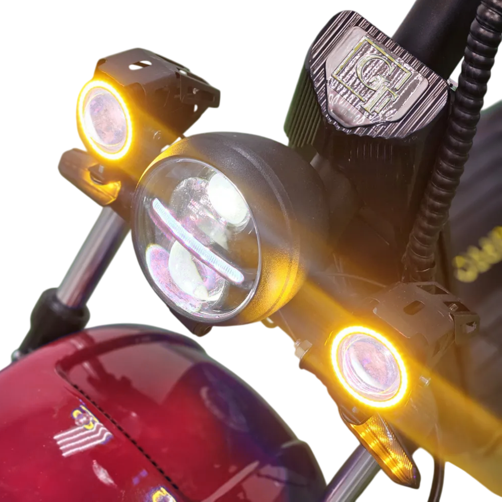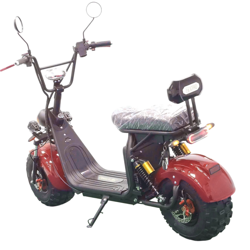 Электроскутер Citycoco GT X7 PRO в стильном красном цвете — это воплощение мощи и надежности для любителей бездорожья. Оснащенный двигателем мощностью 2000W и аккумулятором емкостью 20 Ah, он обеспечивает пробег до 50 км на одном заряде, развивая скорость до 45 км/ч. С максимальной нагрузкой в 200 кг, этот скутер идеально подходит для поездок вдвоем, особенно благодаря складным подножкам для второго пассажира.Скутер оснащен всеми необходимыми элементами освещения для безопасного передвижения: фарой, страбаскопами, стоп-сигналом и поворотниками спереди и сзади. Полная амортизация и гидравлические тормоза гарантируют комфортное и безопасное вождение на любых поверхностях. Большая дека для ног и широкие внедорожные колеса формата Citycoco делают его идеальным выбором для тех, кто ищет сочетание стиля, функциональности и высокой проходимости. Citycoco GT X7 PRO — ваш надежный спутник в любых условиях.