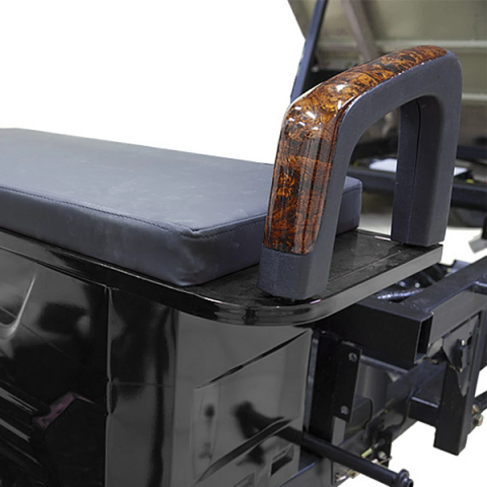Электротрицикл оборудован гидравлической тормозной системой и амортизаторами, обеспечивающими плавность движение и отсутствие проблемой с преодолением препятствий. Транспорт имеет гарантию производителя (1 год).