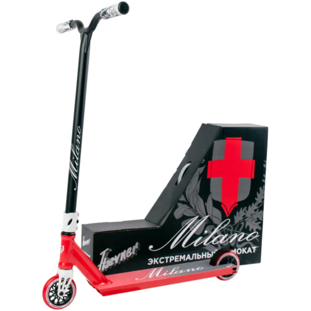 Трюковой самокат Haevner Milano в красно-белом цвете – лучшее предложение этого сезона!  Надежный и долговечный самокат при собственной небольшой массе выдерживает максимальную нагрузку до 100 кг. С такими параметрами пользоваться техникой могут активные и целеустремленные подростки и взрослые райдеры, которые любят испытывать свои возможности.