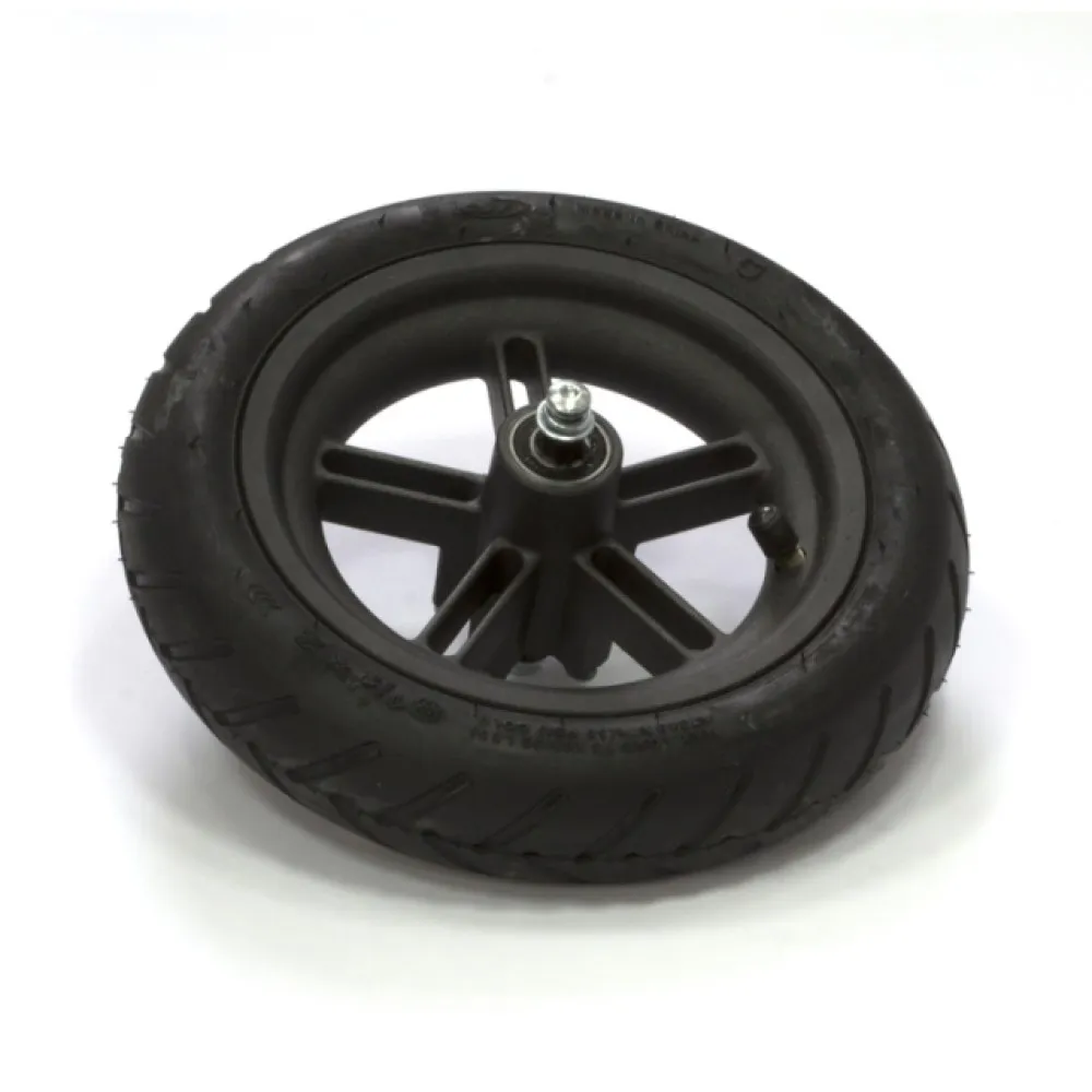 Заднее колесо для электросамоката Xiaomi MiJia M365 полностью укомплектовано, покрышка из эластичной резины для движения по асфальтированной, бетонной дороге, тротуарам, камера с штуцером, само колесо изготовлено из прочного материала, имеет крепления. Оно достаточно прочное и замены требует очень редко.